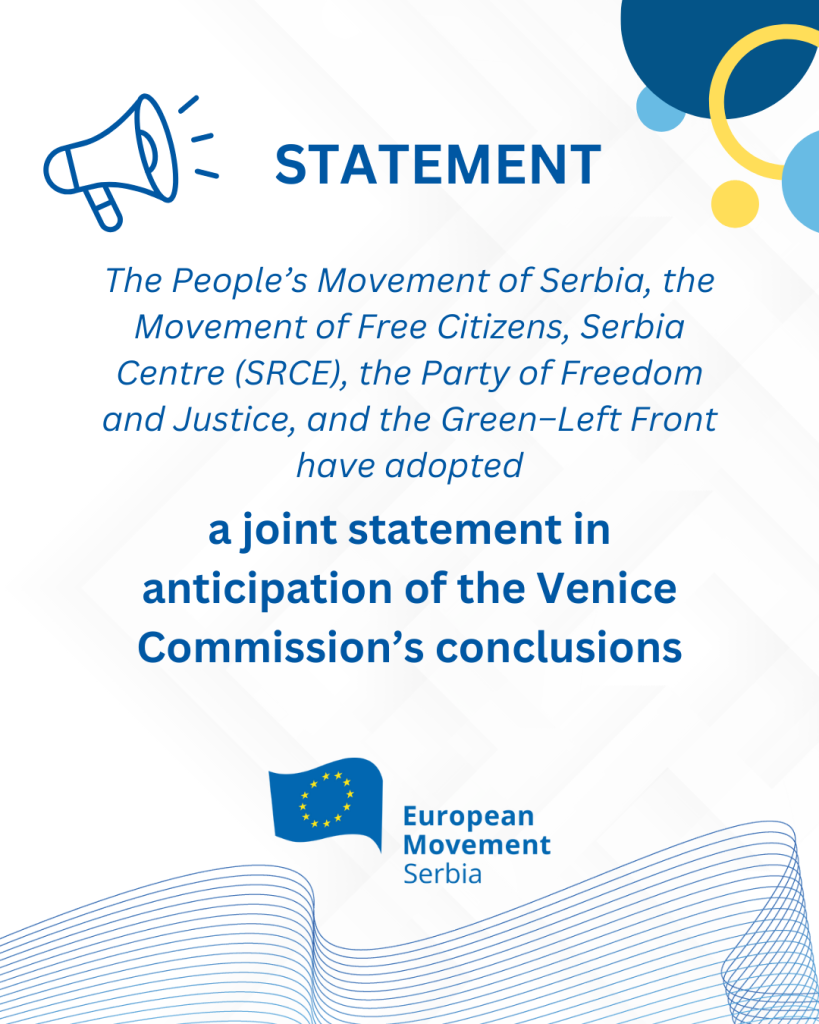 At the meeting, a statement was adopted ahead of the Venice Commission’s conclusions, in which the pro-European parties set out the core principles, objectives, and measures for an urgent and thorough restoration of the rule of law in Serbia, the strengthening of democratic institutions, ensuring the independence of judicial institutions, and establishing an effective fight against corruption and organised crime, fully in line with the values and standards of the European Union.