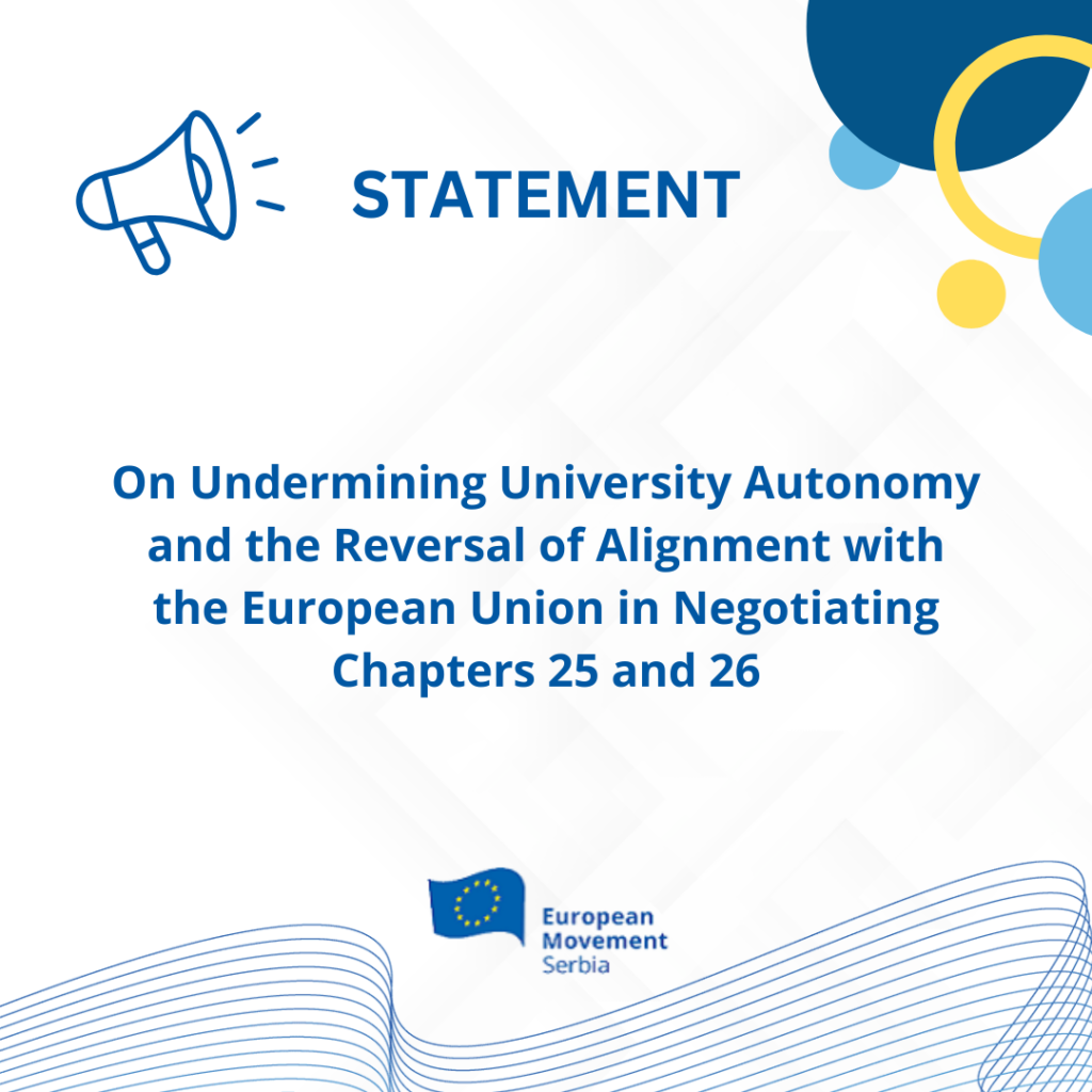 The European Movement in Serbia strongly condemns yesterday’s forced entry of security forces into the Rectorate of the University of Belgrade. This action represents further escalation of the authorities’ coercive approach towards universities, directly undermining academic freedoms and institutional autonomy, as well as the areas that Serbia has already formally aligned with European Union standards.