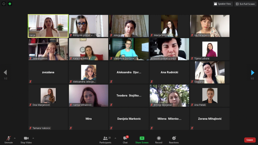 Ove subote, 15. avgusta, okupili smo polaznice programa kao i sve zainteresovane na Okruglom stolu „Žene u medijima i kulturi“, održanom putem Zoom platforme. Diskusiju smo otvorili identifikovanjem položaja žena u medijima i kulturi, mapirali ključne izazove i potrebne promene za poboljšanje njihovog položaja u budućnosti, a posebno smo se osvrnuli i na novonastale okolnosti uzrokovane epidemijom virusa KOVID-19.