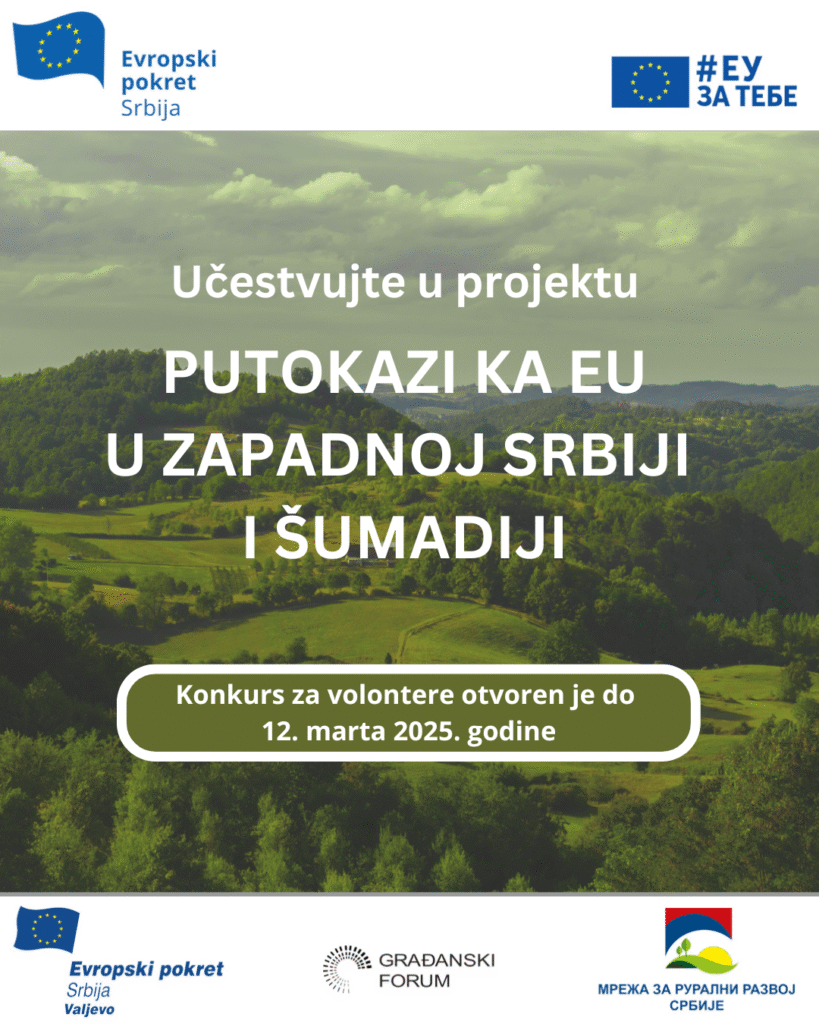 PUTOKAZI KA EU KROZ ZAPADNU SRBIJU I ŠUMADIJU – POZIV ZA MLADE VOLONTERE