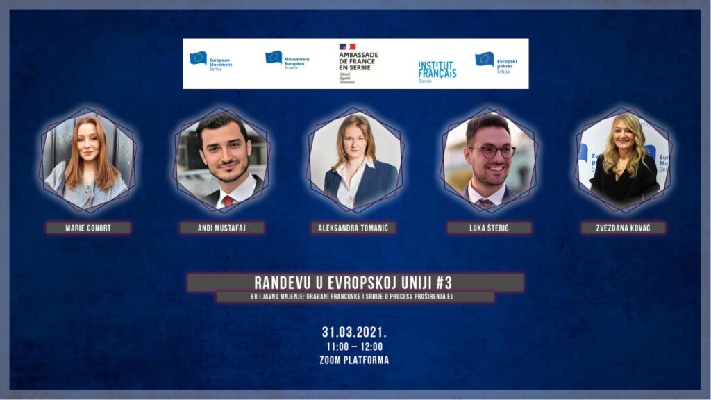 Panel o javnom mnjenju građana Srbije i Francuske na temu proširenja EU, bio je treći u nizu serije pod nazivom “Randevu u Evropskoj uniji” koju podržava Ambasada Francuske u Srbiji i Francuski institute u Beogradu.